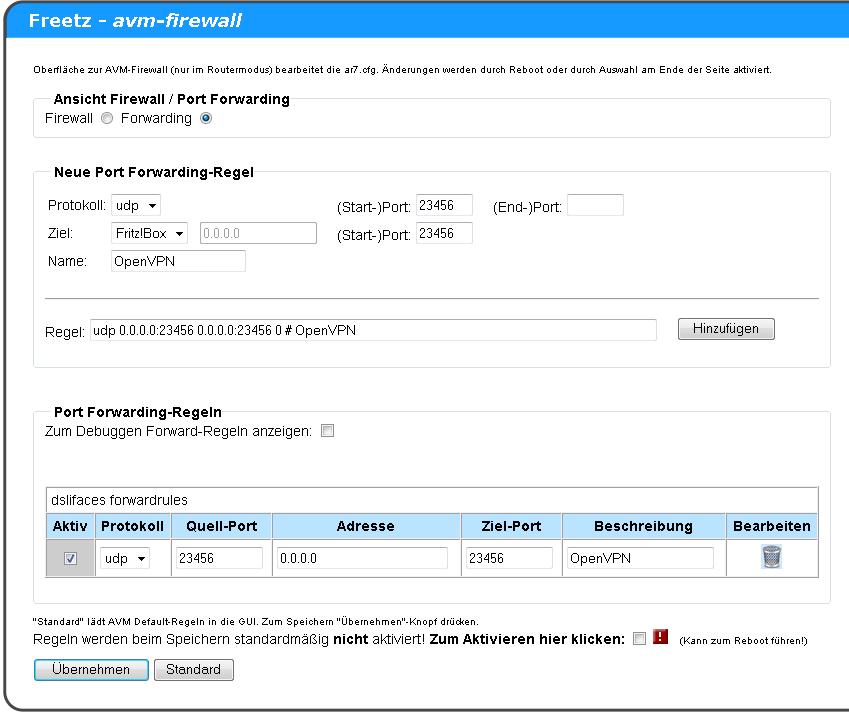 AVM-Firewall Änderungen vornimmt.