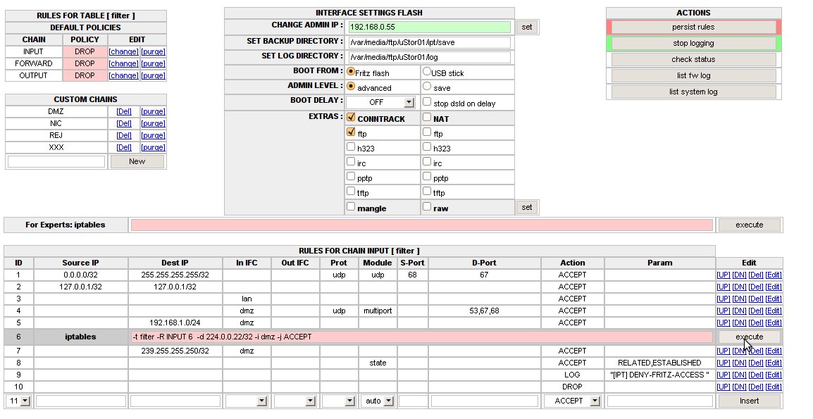 auch im Expert Mode (Kommandozeile mit iptables syntax) eingegeben