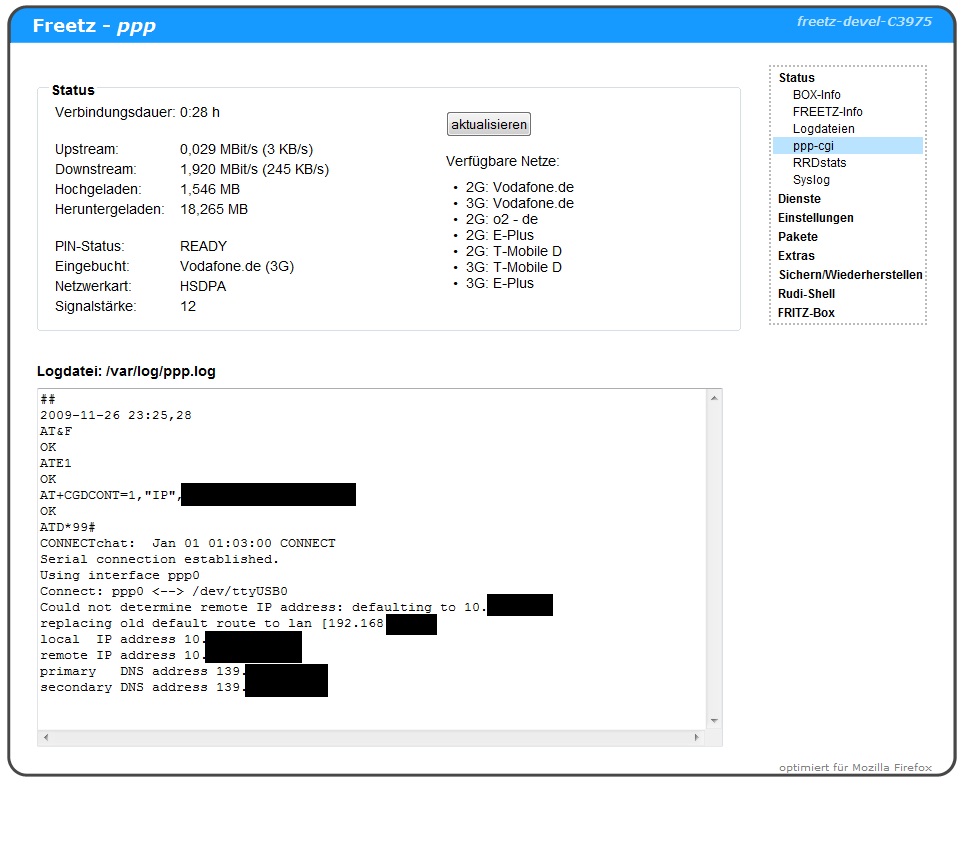 Freetz-Webinterface unter "Status" eingesehen werden. Es ist zu