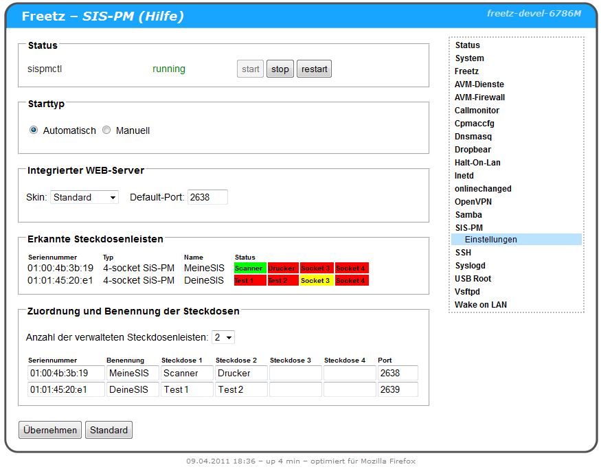 und verwalten muss. Für das in sispmctl integrierte Webinterface stehen