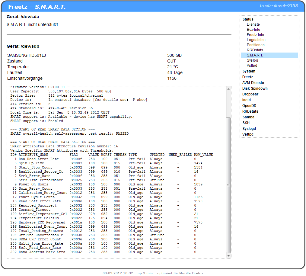 genannt) ausgelesen, und im Freetz-Webinterface unter Status angezeigt