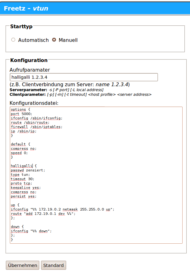 ^Es besteht die Möglichkeit, VTUN statisch zu bauen, um mögliche Probleme damit zu vermeiden^ - Flusssteuerung ("Traffic-Shaping")