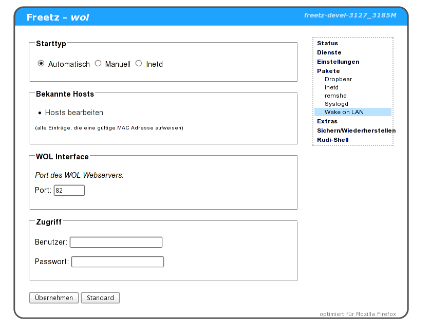 Menüpunkt "Freetz WOL" des AVM-WebInterfaces zu erreichen. Darin