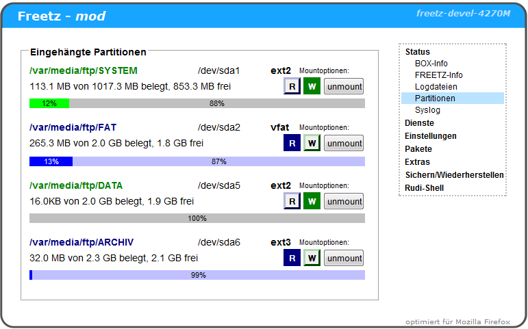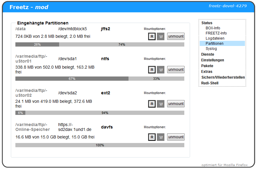 Das Aussehen von mounted.cgi (Balken für die Größe der internen und