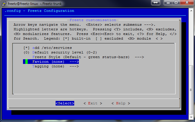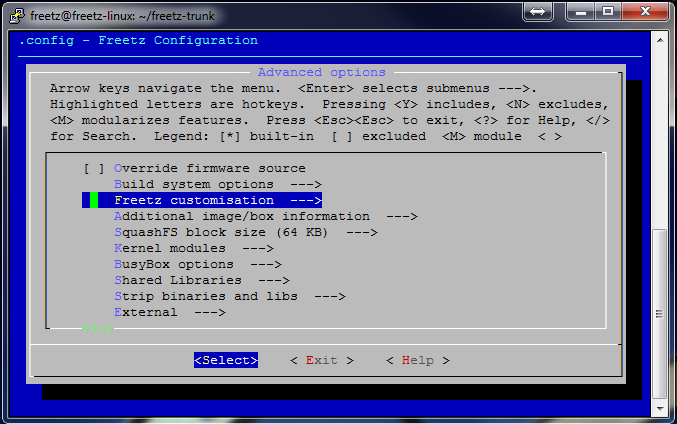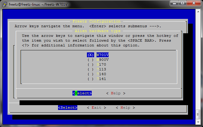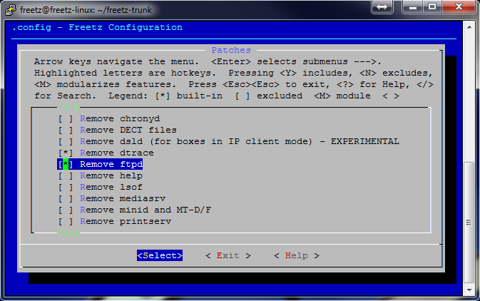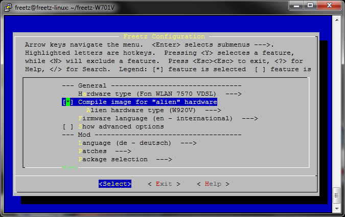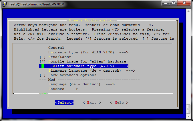 Dies ist wieder die Konfigurations-Oberfläche des Freetz-Buildsystems.
