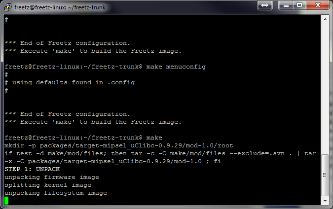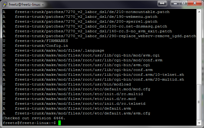 Danach wechselt man in das Freetz Verzeichnis mit cd freetz-trunk