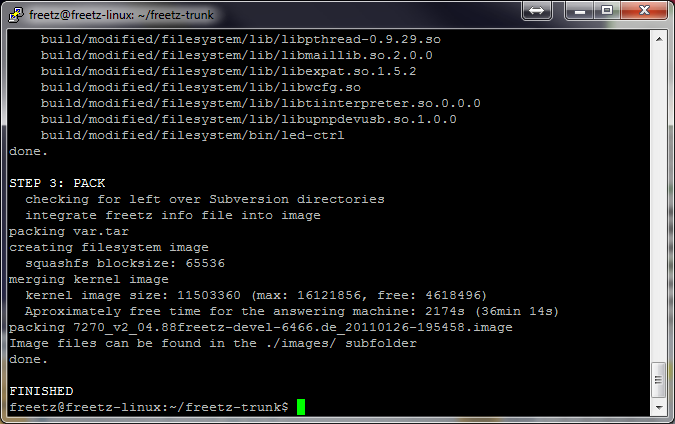 Das Vorgehen um ein Trunk-Image zu bauen stimmt bis zum Punkt Freetz