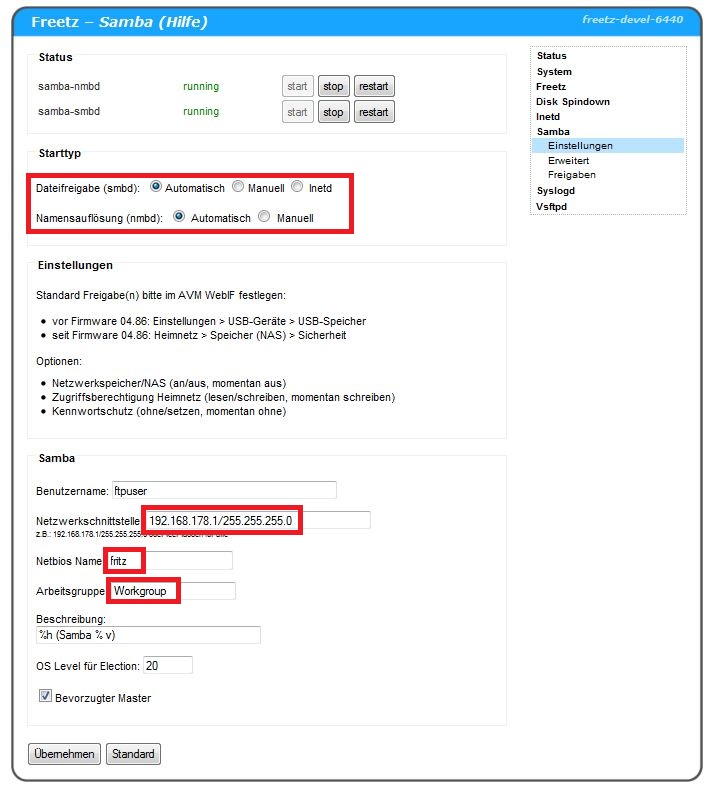 Standard Samba-Server der FritzBox ersetzt.