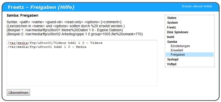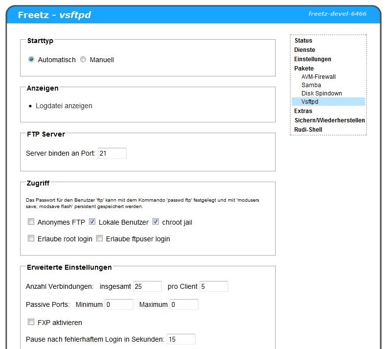 FTP-Freigaben für Freetz-1.1.x-Images werden später erklärt