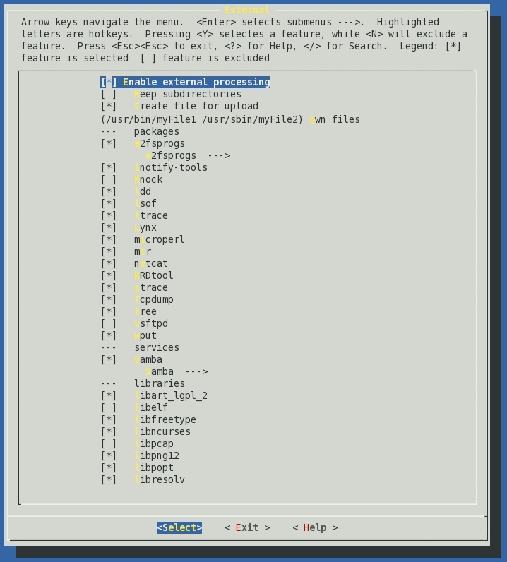 zu finden im menuconfig unter "Advanced Options" → "External"