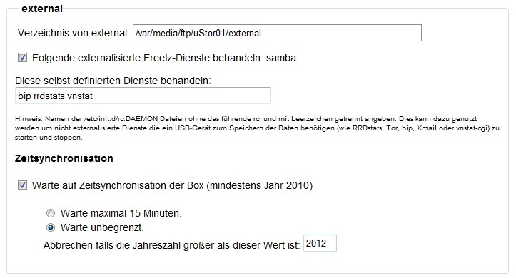 zu den external-Dateien kann im Webinterface unter Freetz →